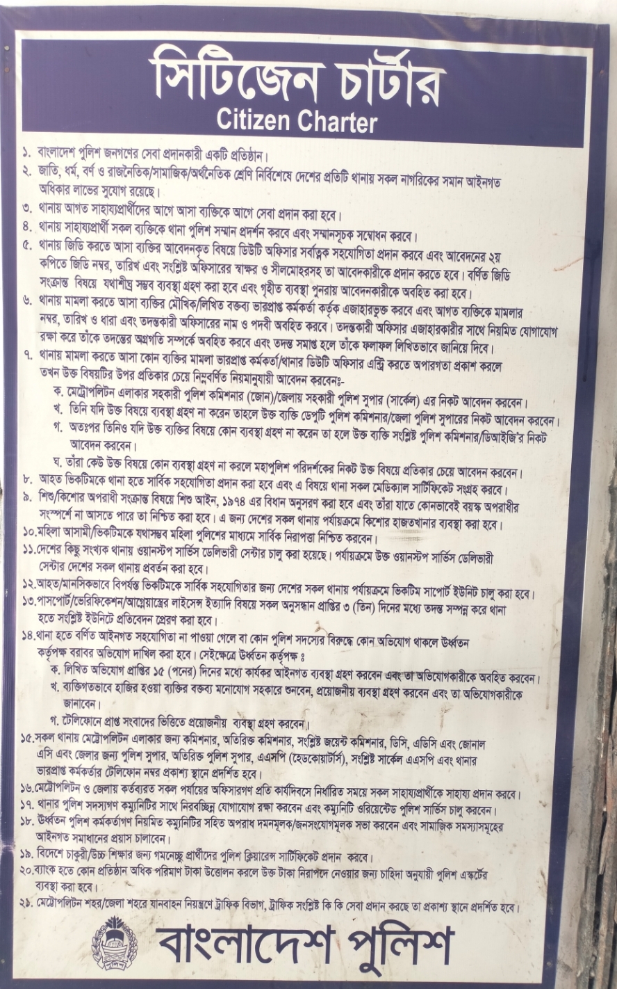 ৪। থানায় সাহায্য প্রার্থী সকল ব্যক্তিকে থানা পুলিশ সম্মান প্রদর্শন এবং সম্মান সুচক সম্বোধন করা